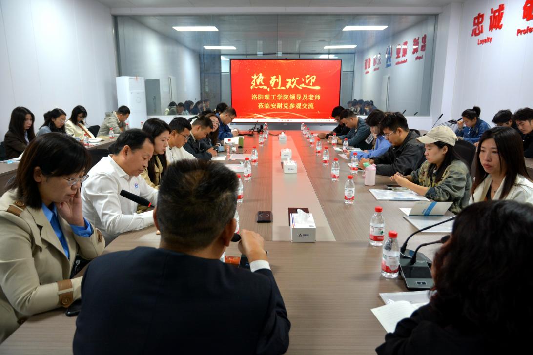 为进一步加强校企合作,深化产教融合,推动人才培养与企业需求的精准对接,9月19日,洛阳理工学院招生就业处处长路利红、副处长孙玉宇带领2026届毕业班辅导员前往洛阳安耐克科技股份有限公司参观交流,以沉浸式调研、精准化对话搭建校企协同育人新桥梁。安耐克高温科技集团副总裁兼总工程师章道运,党委副书记吕迎军等接待来访。