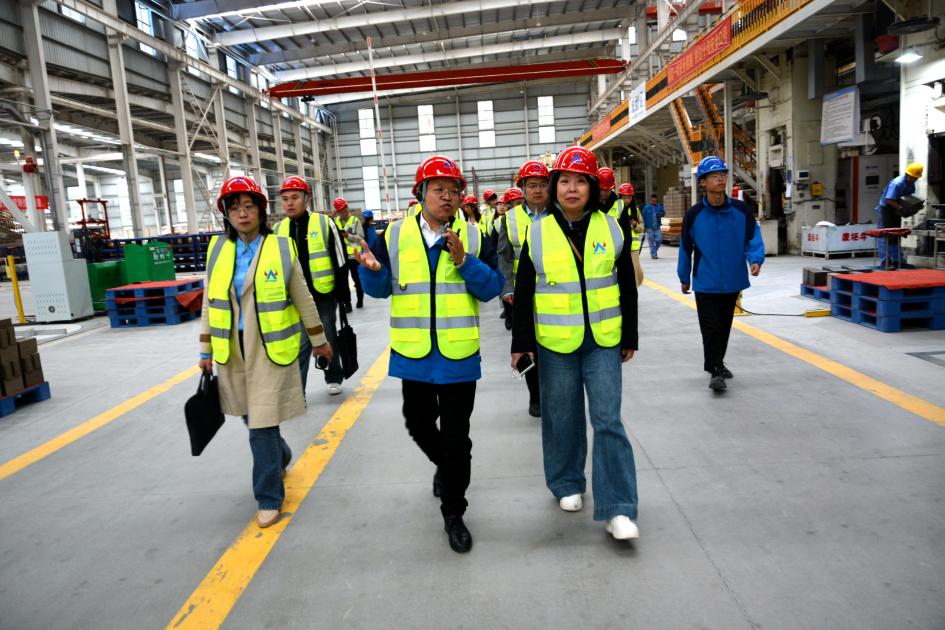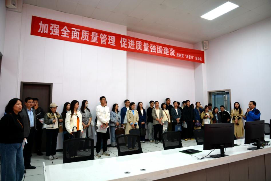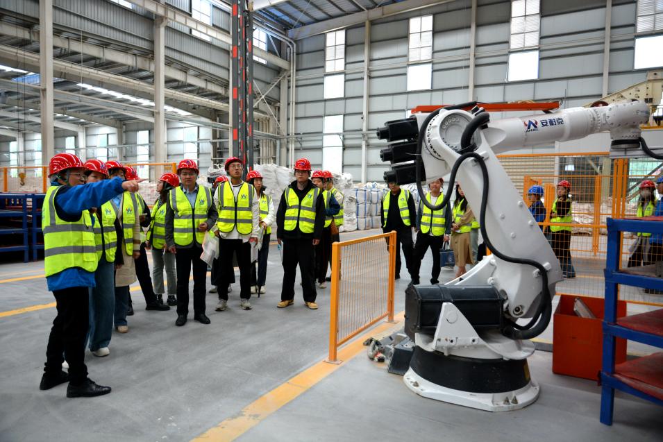 在中控室,吕迎军向路利红一行介绍了安耐克集团的发展历程、技术创新成果、市场应用以及洛阳安耐克的建设情况和未来规划。随后,大家走进绿色智能生产线,实地感受先进的生产工艺和智能化生产流程。